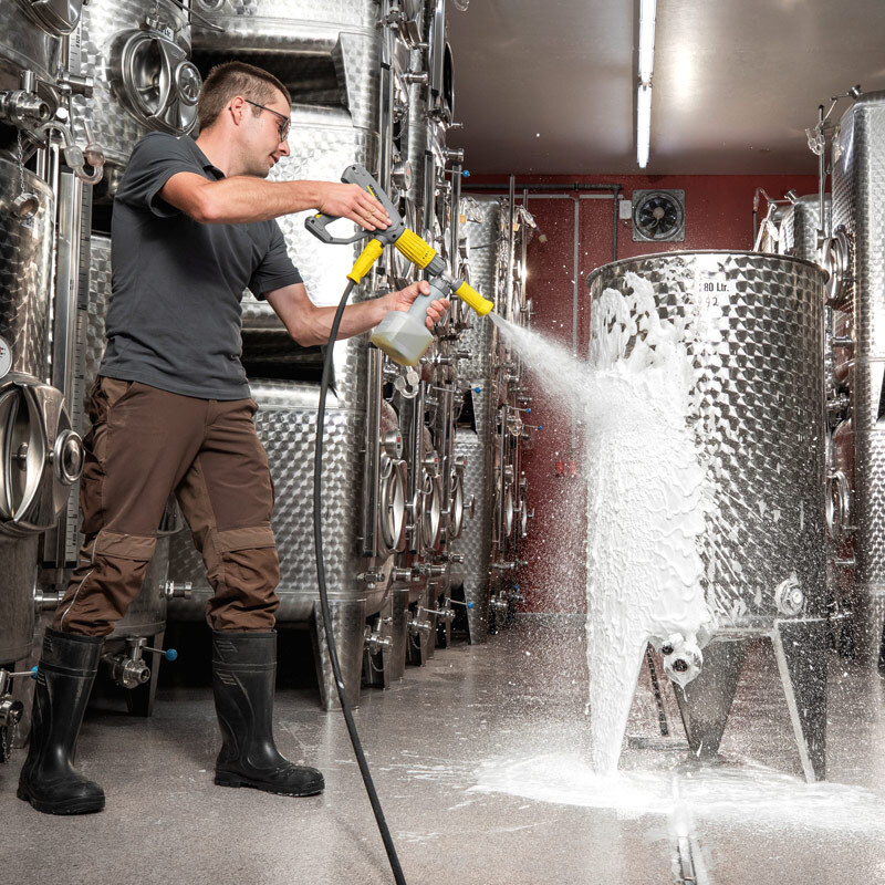 Эргономичная, компактная насадка для нанесения чистящего раствора в виде пены (пенокомплект) с поворотным соединением EASY!Lock - прекрасно подходит, например, для пенной чистки автомобилей.