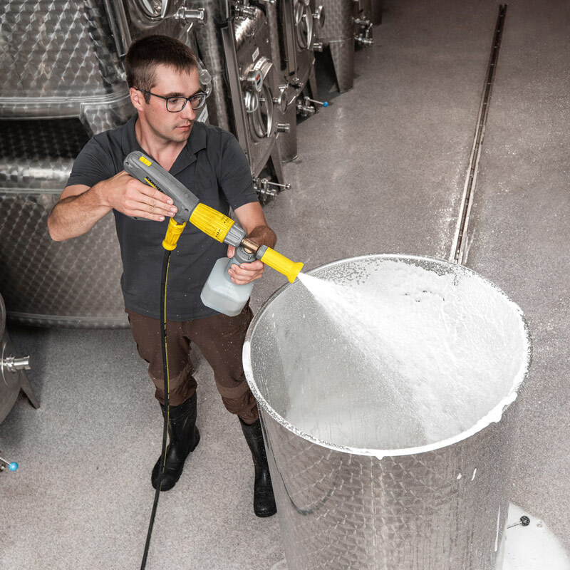 Простое, надежное и экономичное решение: трубка для пенной чистки с баллоном для чистящего средства формирует пену превосходного качества и уменьшает расход продукта при мойке. 3-ступенчатая регулировка концентрации при помощи встроенной заслонки исключает случайное изменение настройки. Система быстрого соединения EASY!Lock. Для аппаратов производительностью 350-600 л/ч.