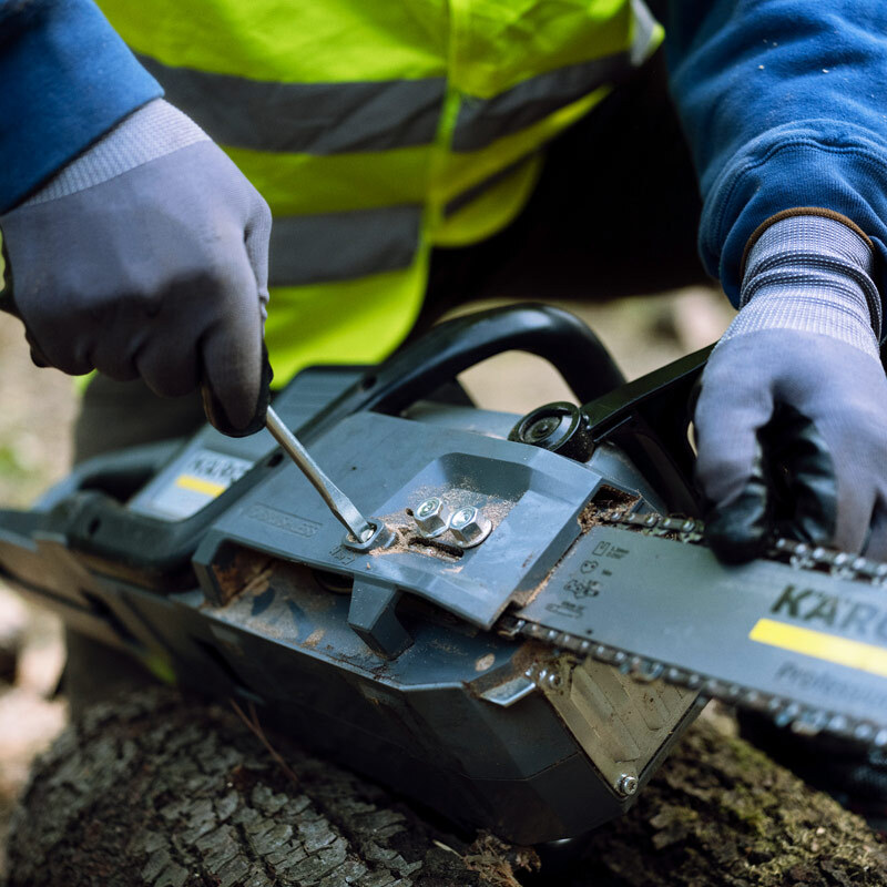 Надежная аккумуляторная цепная пила Karcher CS 400/36 Bp - мощное решение для повседневного выполнения работ по уходу за зелеными насаждениями в парках, садах или на городских улицах, а также для эпизодического применения в лесном хозяйстве. Превосходно сбалансированный инструмент с низким уровнем шума и вибраций очень удобен в работе, не загрязняет окружающую среду выхлопными газами и отличается от бензиновых цепных пил намного меньшими эксплуатационными затратами.