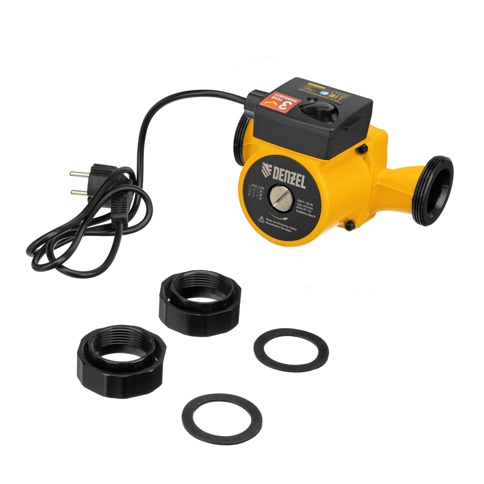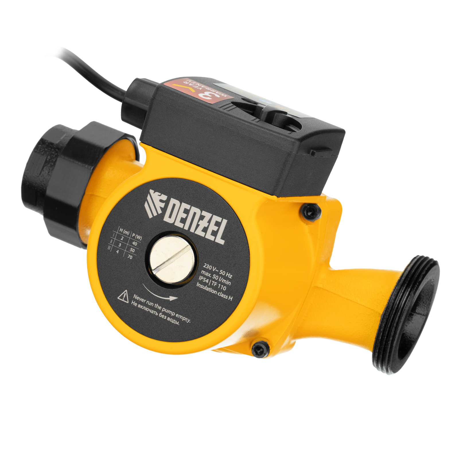 Циркуляционный насос Denzel CP32-4 99413 с кабелем длиной 1 м имеет монтажную длину 180 мм и обеспечивает напор до 4 м, максимальный объем перекачиваемой жидкости составляет 50 л/мин. Устройство обеспечивает непрерывное движение горячей воды температурой до 110 °C по трубопроводу. Насос позволит организовать эффективную систему теплоснабжения загородного дома.