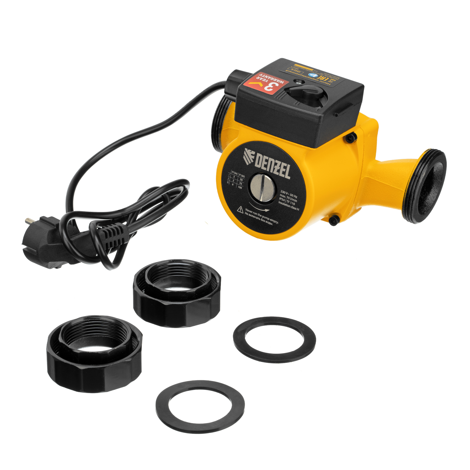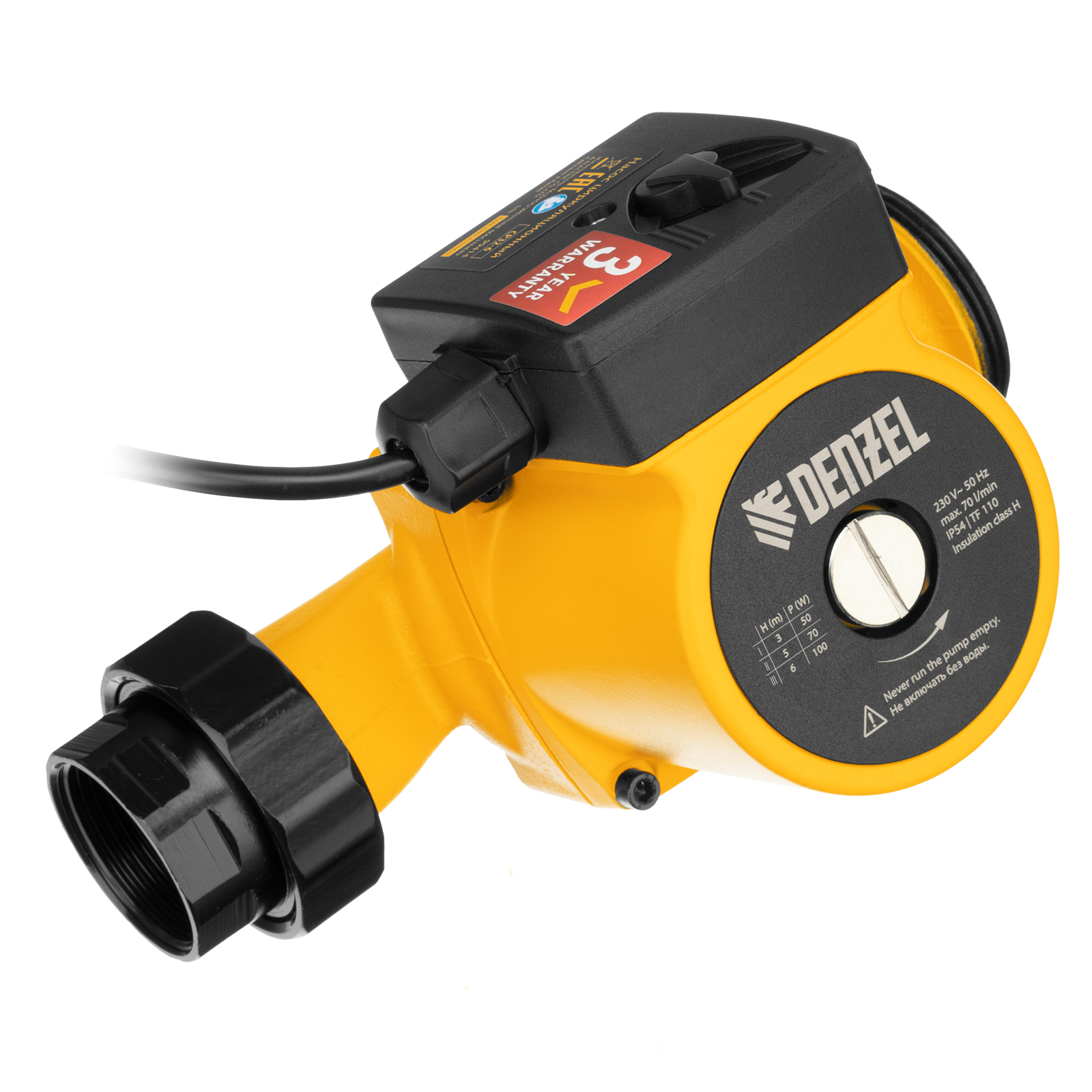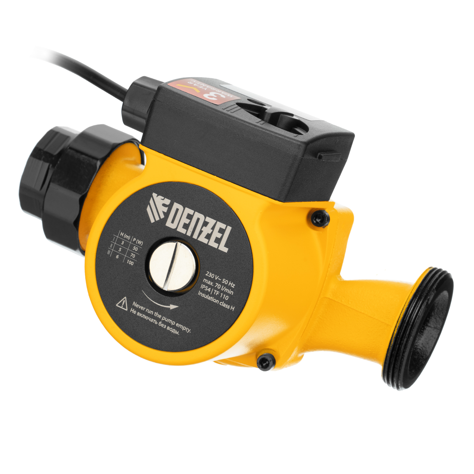 Циркуляционный насос Denzel CP32-6 99414 с кабелем длиной 1 м имеет монтажную длину 180 мм и обеспечивает напор до 6 м, максимальный объем перекачиваемой жидкости составляет 70 л/мин. Устройство обеспечивает непрерывное движение горячей воды температурой до 110 °C по трубопроводу. Насос позволит организовать эффективную систему теплоснабжения загородного дома.