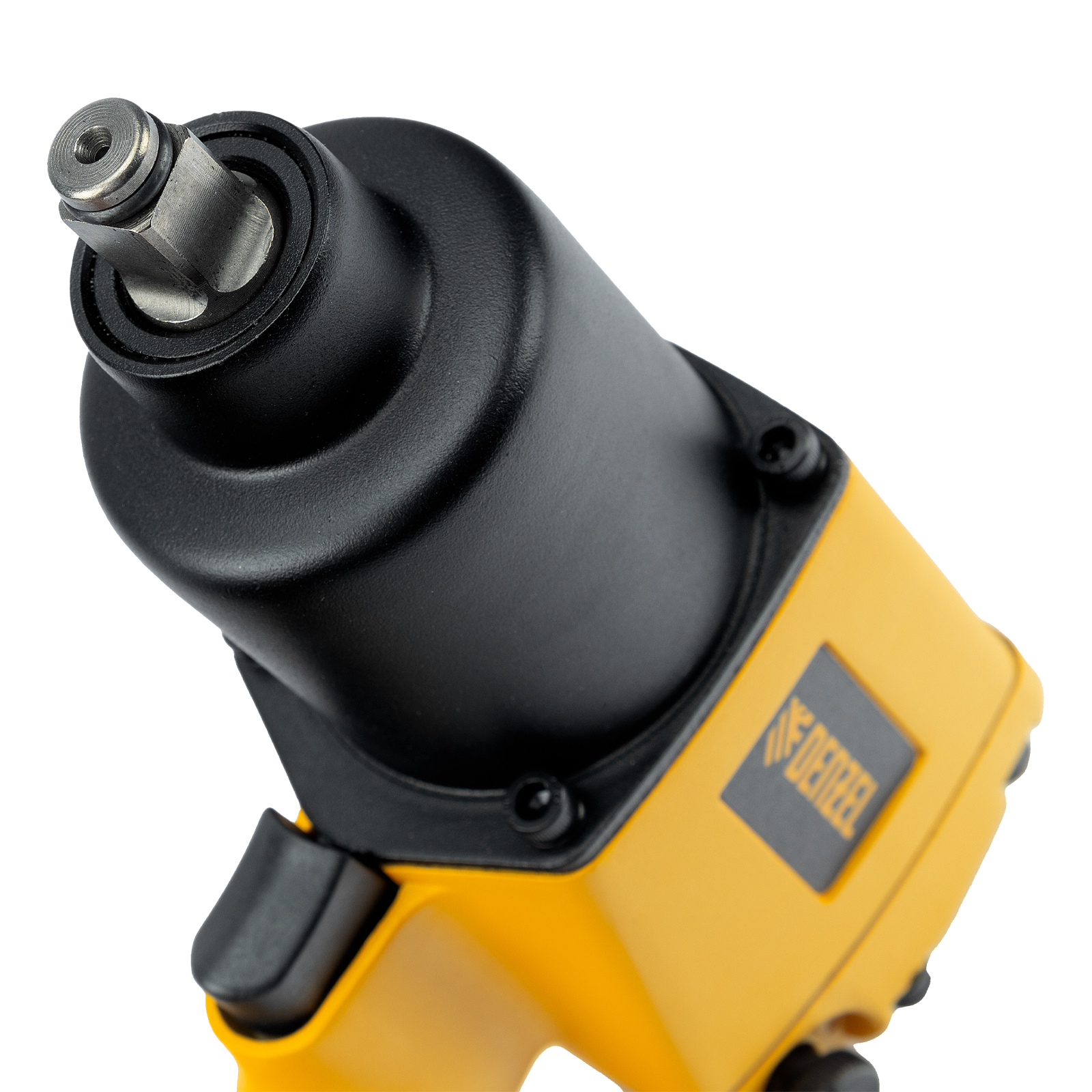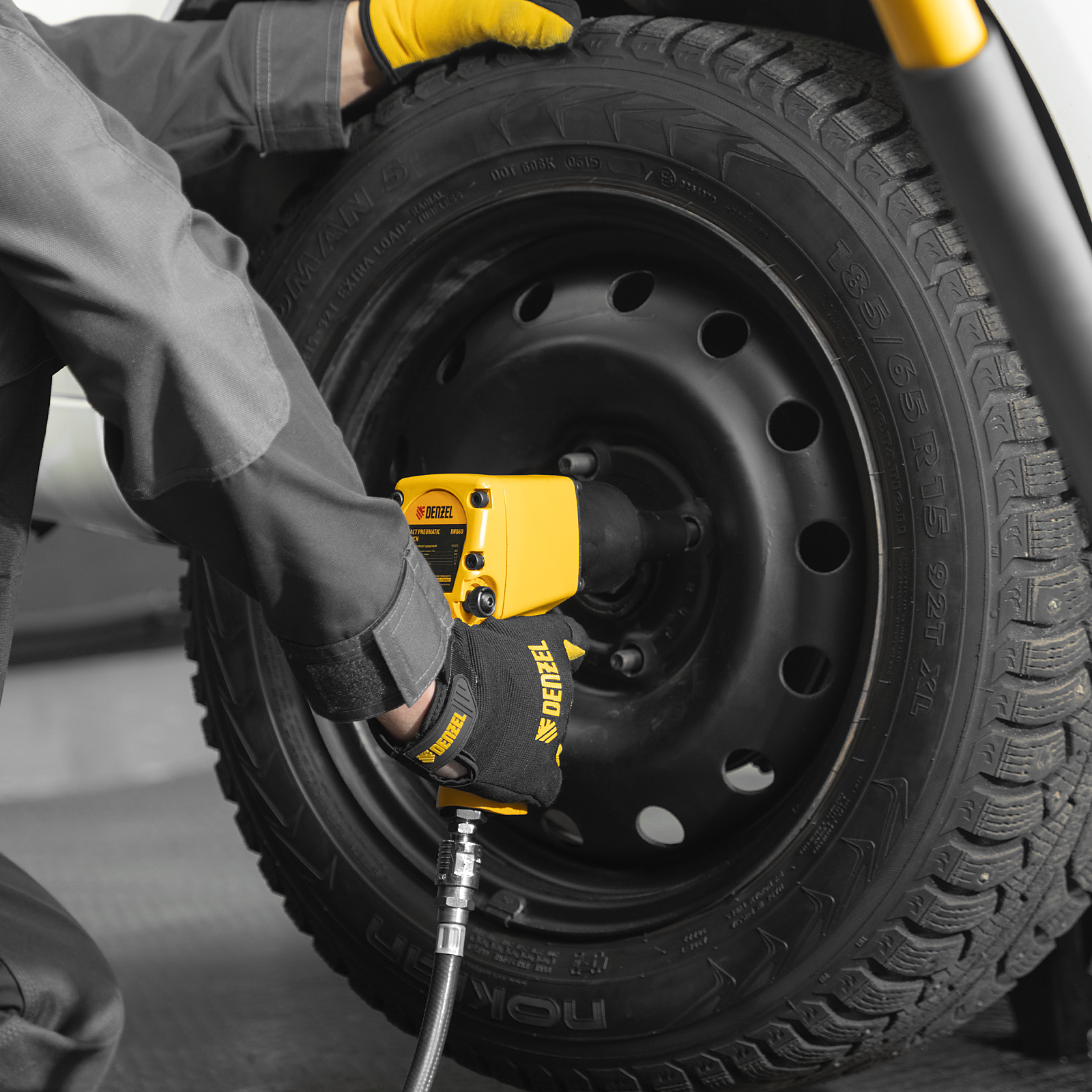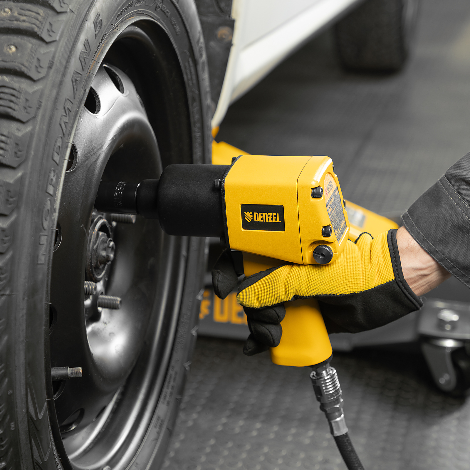 Ударный пневмогайковерт Denzel IW860 57473 с присоединительным квадратом 1/2″, скоростью вращения шпинделя 7000 об/мин и максимальным крутящим моментом 868 Нм служит для монтажа и демонтажа резьбовых соединений, в том числе высоконагруженных. Предусмотрено 10 режимов работы, что позволяет точно установить оптимальную скорость. Инструмент предназначен для профессионального использования в цехе, на строительной площадке или в автосервисе.