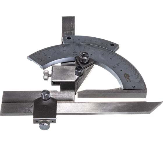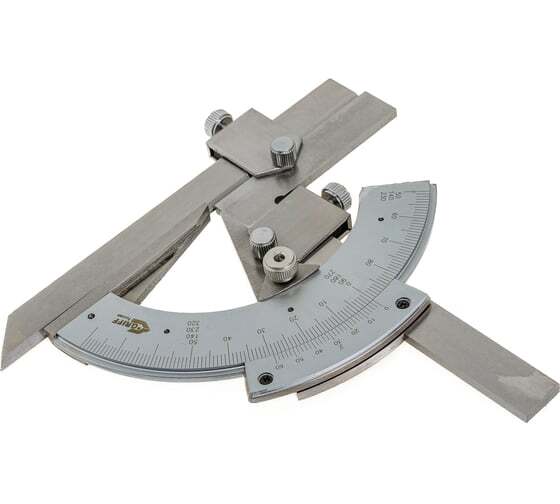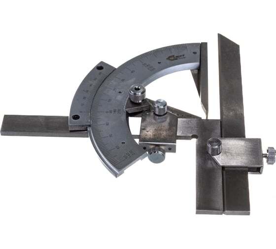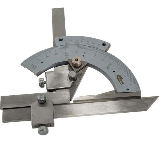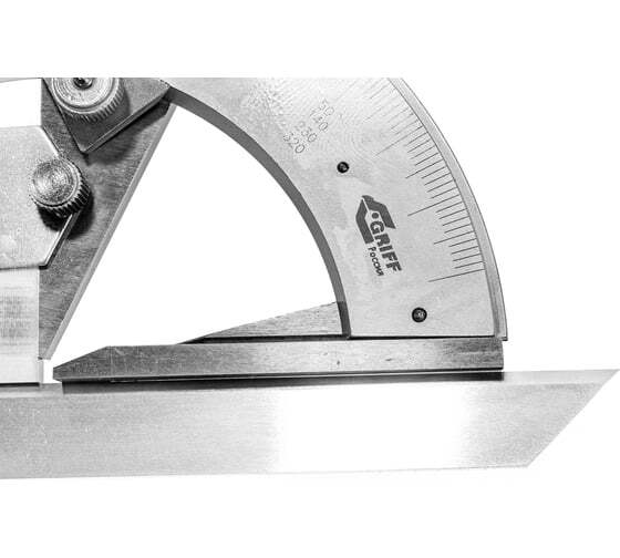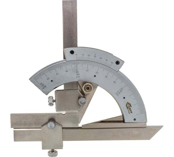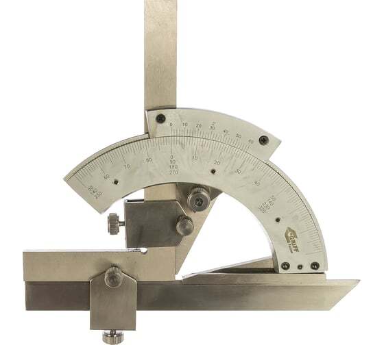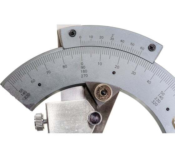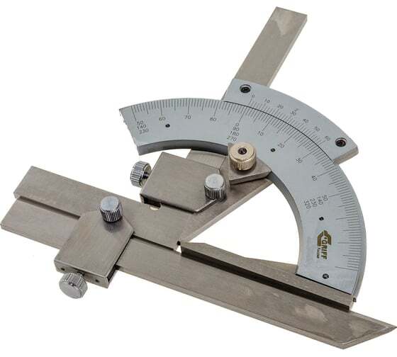 Угломер типа 2-2 GRIFF ГОСТ 5378-88 D142001 служит для измерения углов изделий. Внутренние углы определяются в диапазоне 40-150º, внешние - 0-320º. Цена деления шкалы - 1º. Для повышения точности замеров в данной модели предусмотрен нониус с величиной отсчета 2'.