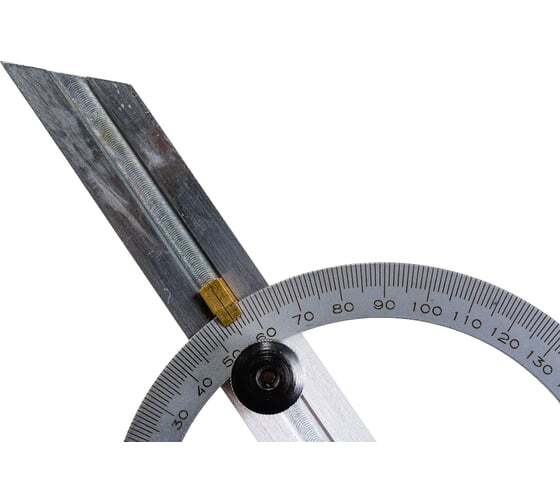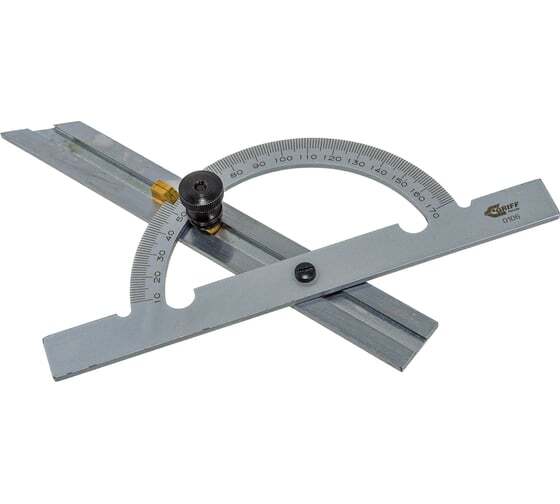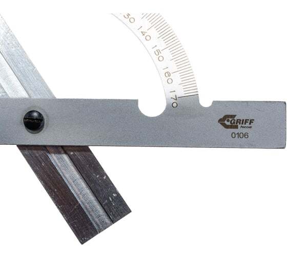 Угломер-транспортир GRIFF 0-180, d=100мм, L=150мм D143005 предназначен для измерения и разметки углов при выполнении столярных и слесарных работ.