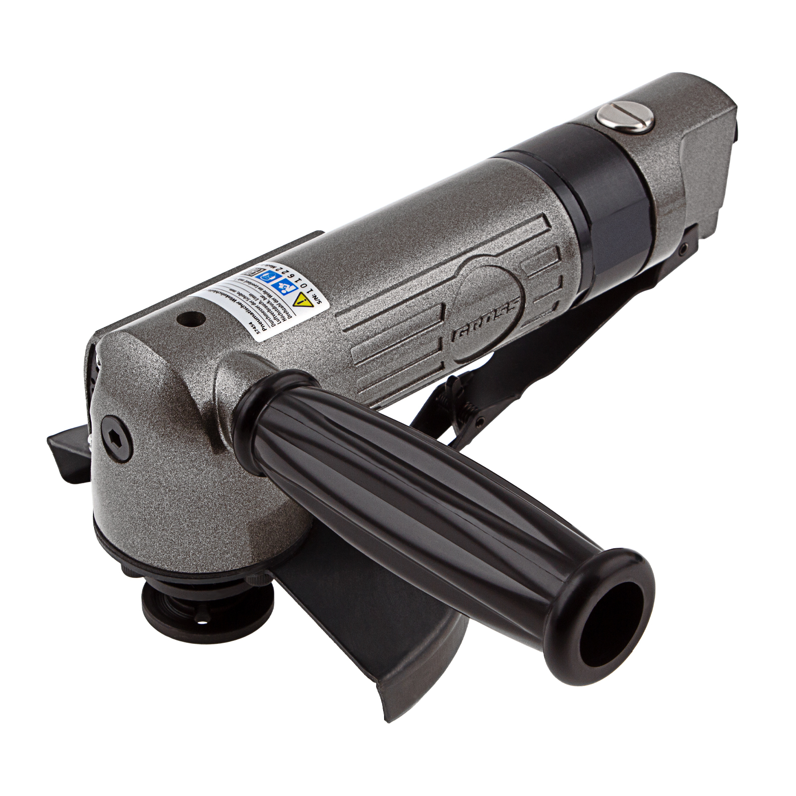 Угловая шлифовальная машина пневматическая Gross G506 57454 с частотой вращения 11000 об/мин подходит для оснастки диаметром до 125 мм (5″). Инструмент предназначен для резки и шлифовки каменных и металлических материалов без использования воды. Максимальная толщина обрабатываемых материалов составляет 35 мм. При этом расход воздуха составляет всего 170 л/мин, поэтому для работы не требуется мощный компрессор. Углошлифовальная машина, или УШМ, подходит для профессиональных работ на строительной площадке, в автосервисе, в арматурных и сварочных цехах.