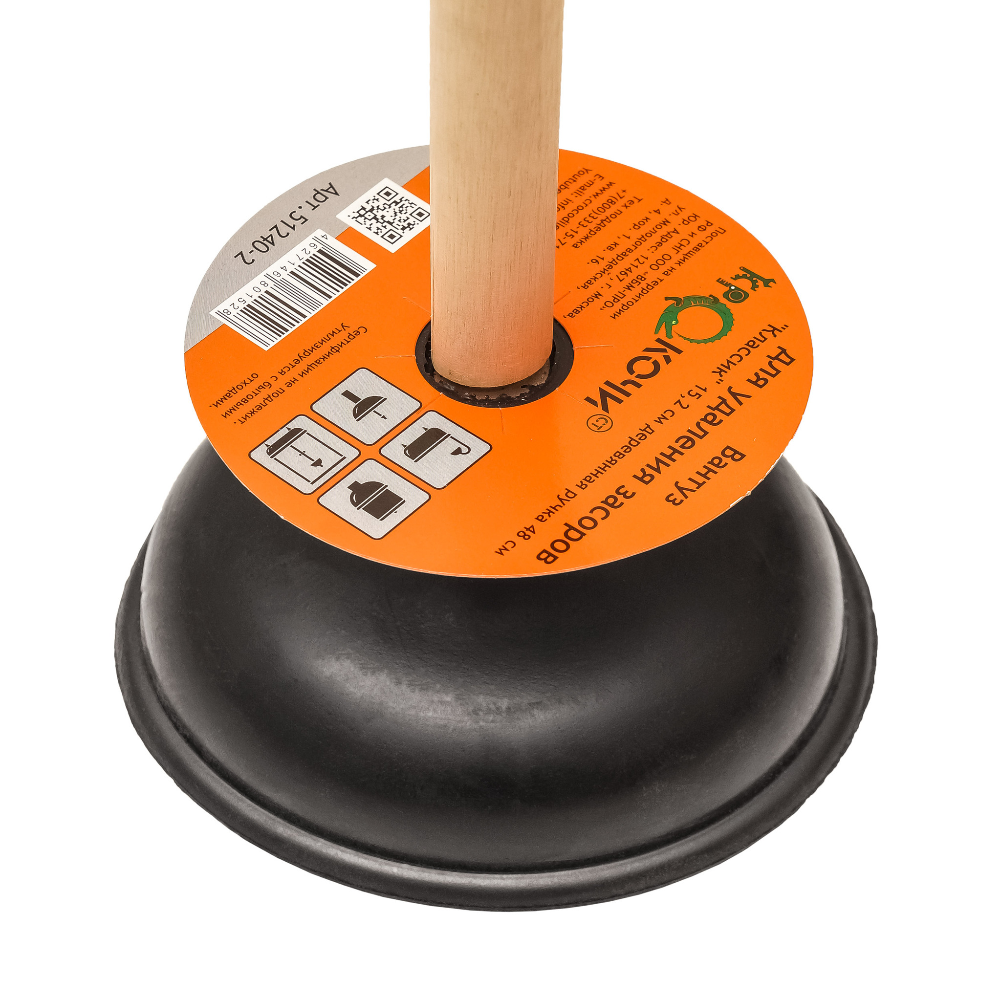 Классический вантуз с длинной деревянной рукояткой 48 см. Чаша подходит для любых сливов. Крепление чаши вантуза выполнено на резьбе. Ручка надежно прикреплена. Чаша имеет увеличенный объем 0,6 литра.Сделан из первичной резины. Не оставляет следов на сантехнике.