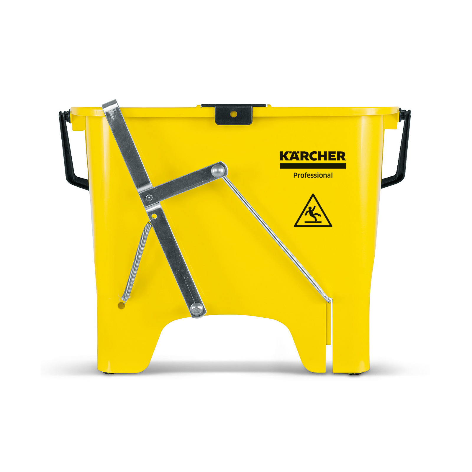 Ведро Karcher идеально подходит для быстрой уборки небольших площадей: простая система состоит из 15-литрового ведра с перегородкой и роликового отжима с педальным управлением. Встроенная эргономичная дугообразная ручка облегчает подъем и транспортировку.