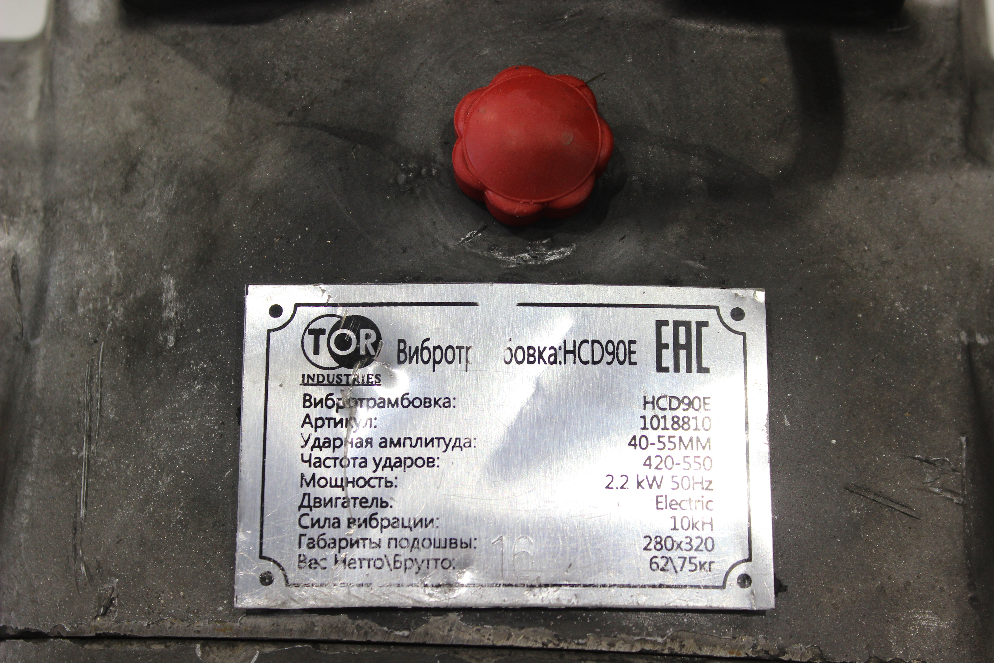 Вибротрамбовка электрическая TOR HCD90E с номинальной мощностью 2,2 кВт обладает силой удара 10кН.