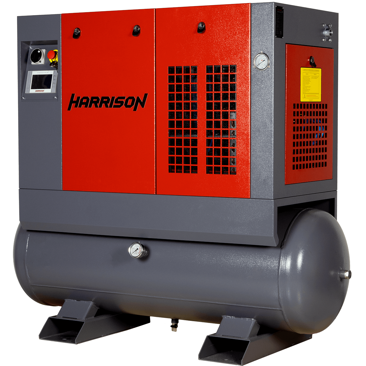 Моноблочная компрессорная установка Harrison «четыре в одном» (4 в 1) включает винтовой компрессор, ресивер горизонтального типа 300 литров, осушитель-рефрижератор, который производит подготовку и очистку сжатого воздуха исполнительным устройствам и комплект магистральных фильтров.