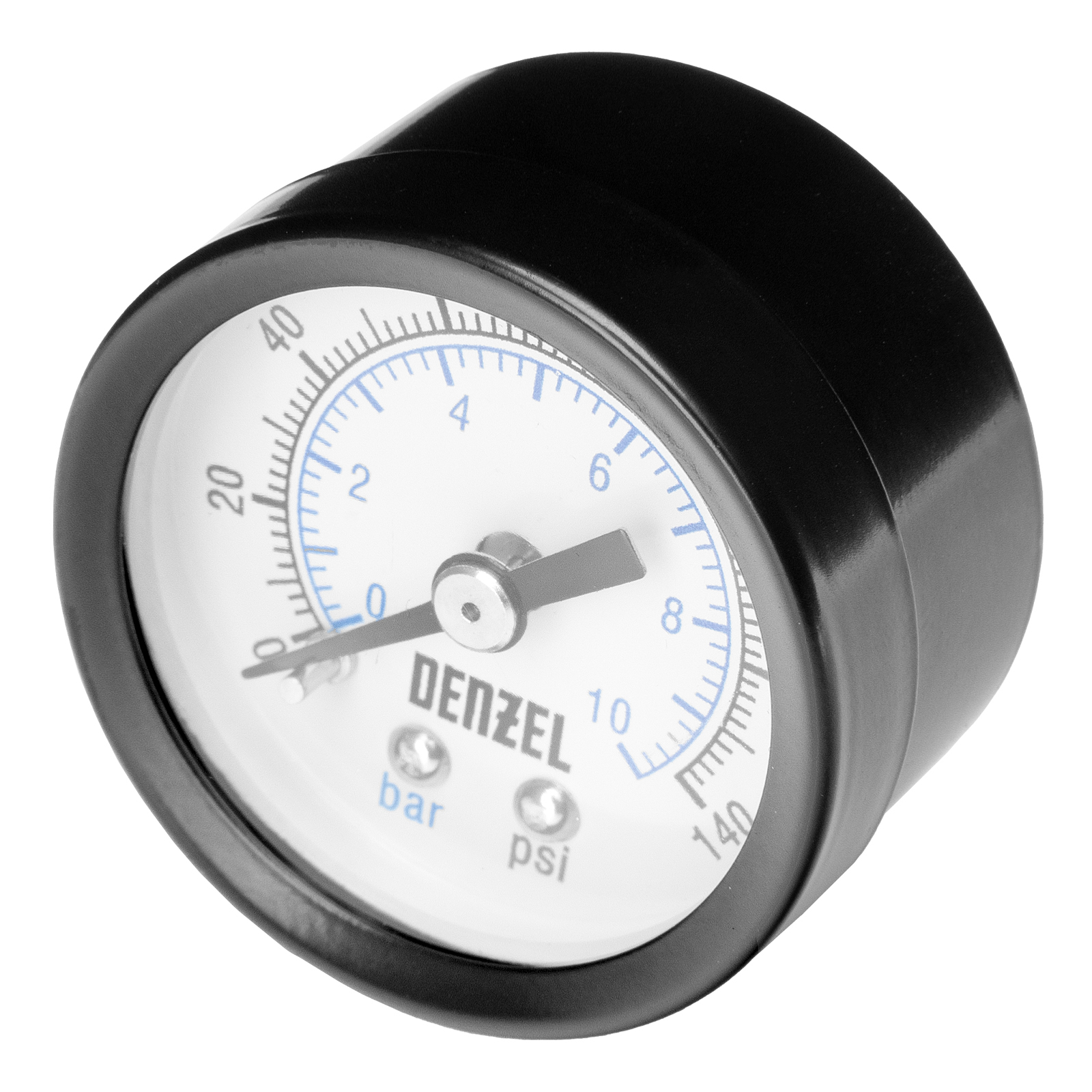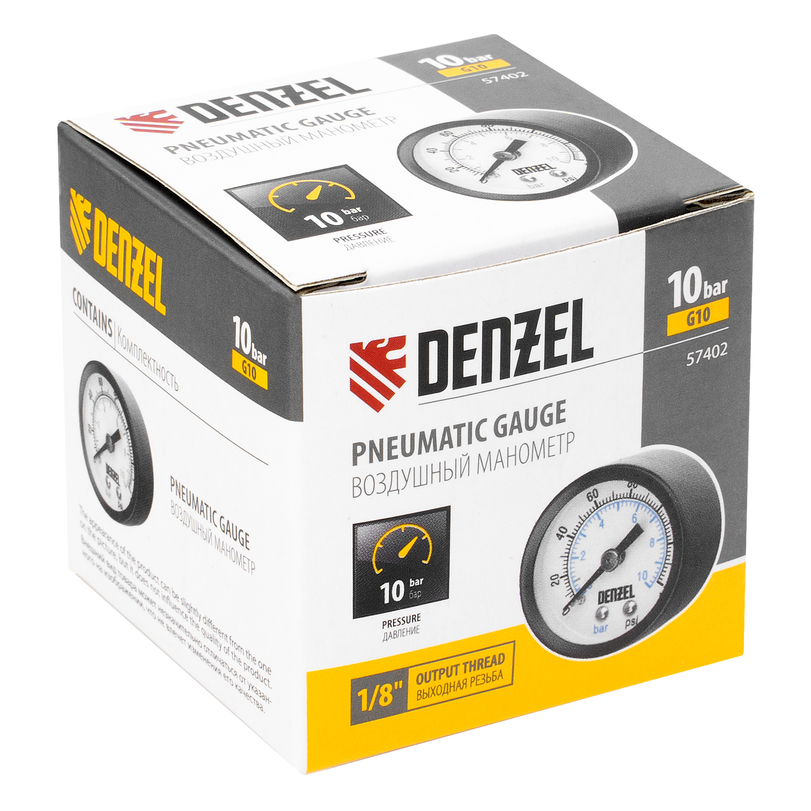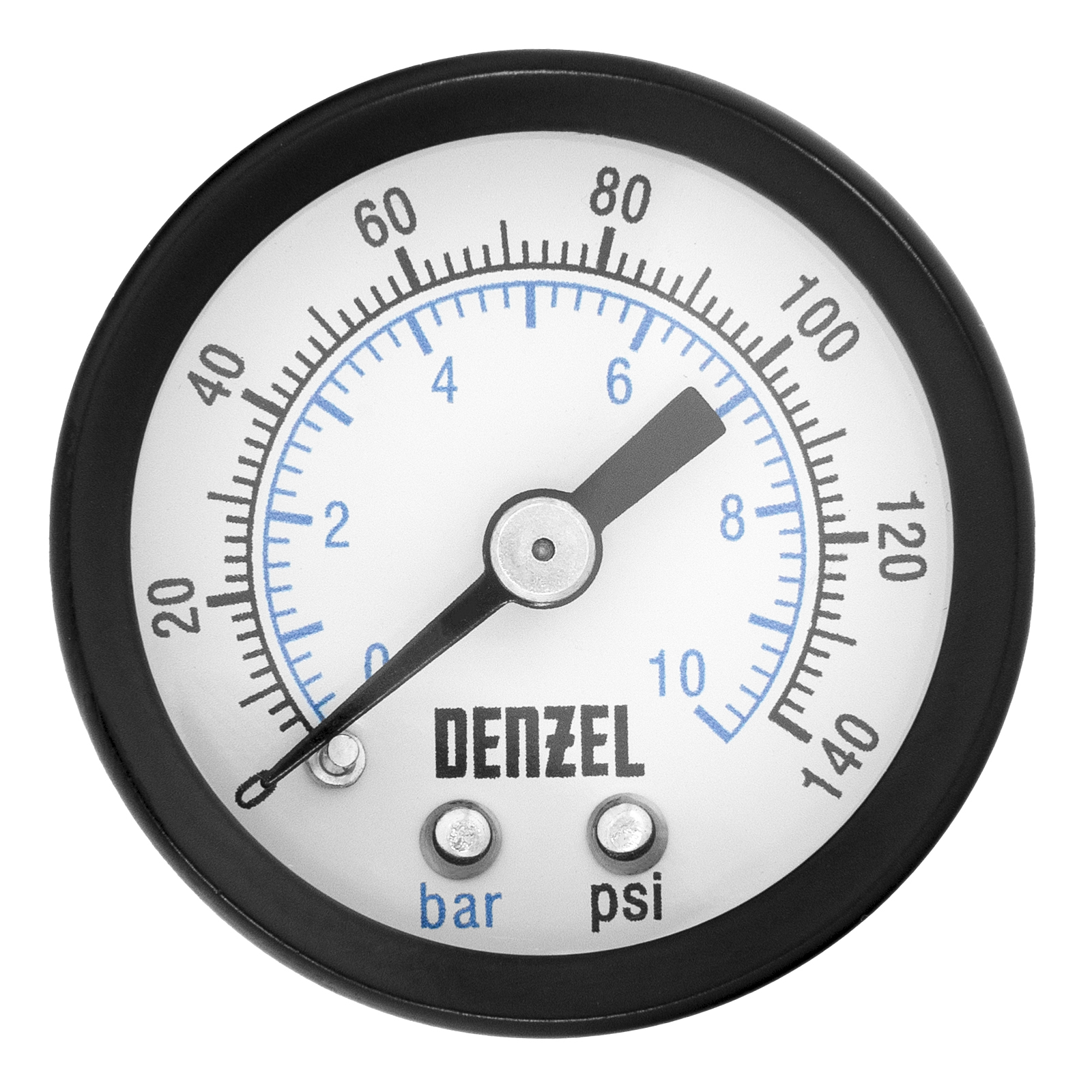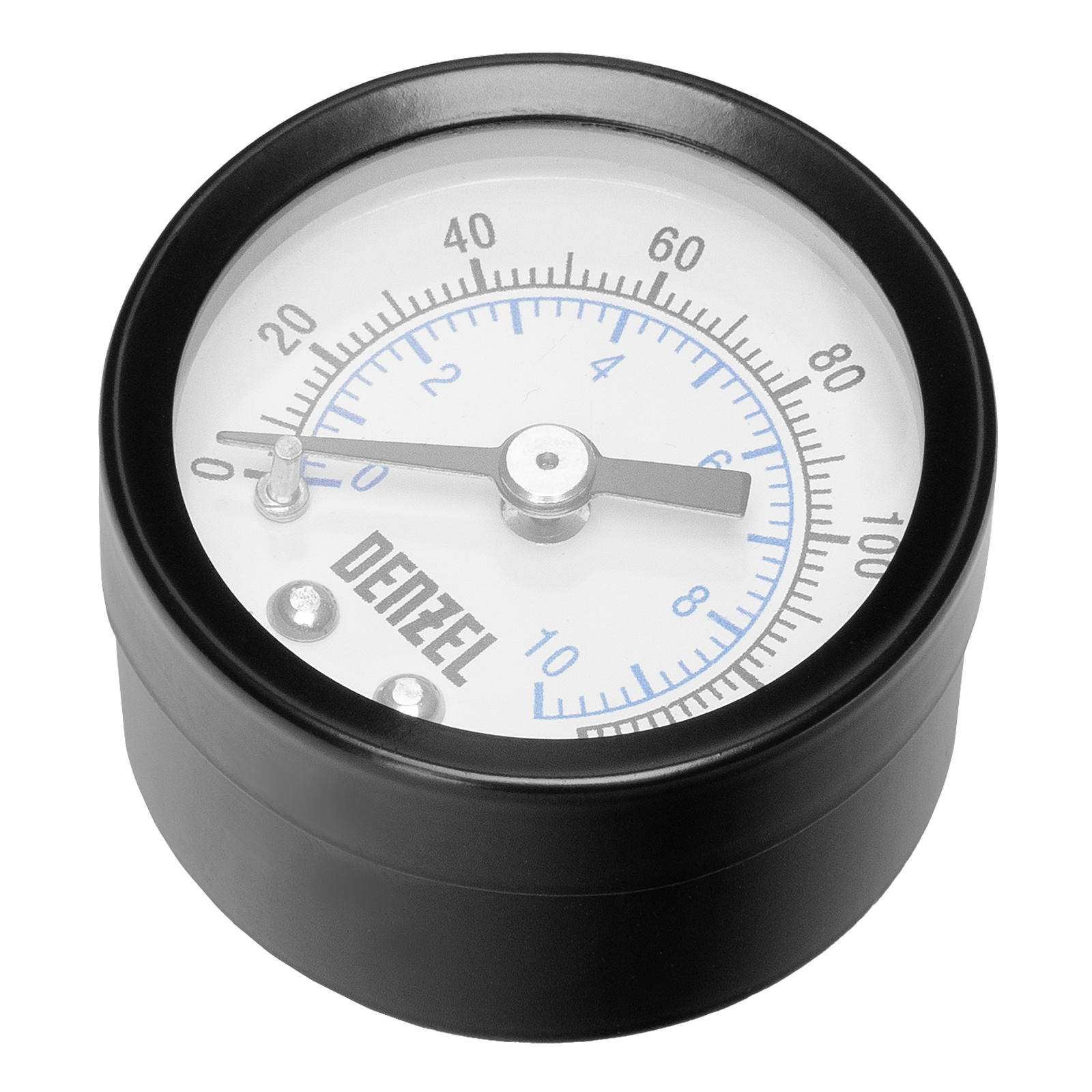 Воздушный манометр Denzel G10 57402 диаметром 40 мм, с резьбой 1/8″, — прибор для измерения давления в диапазоне 0-10 бар. Легко монтируется на стандартные соединения, может устанавливаться на компрессор для контроля работы пневмоинструмента. Пригодится на станции ТО и на производстве.