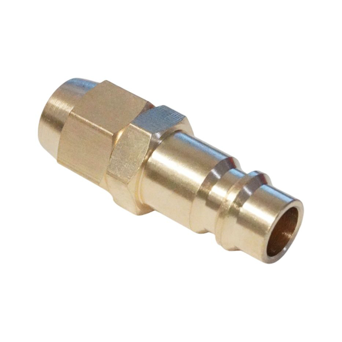 Предназначен для присоединения к пневматическим шлангам через обжимное крепление. Применяется совместно с быстросъемным соединением "мама". Латунный корпус исключает возможность появления коррозии.
