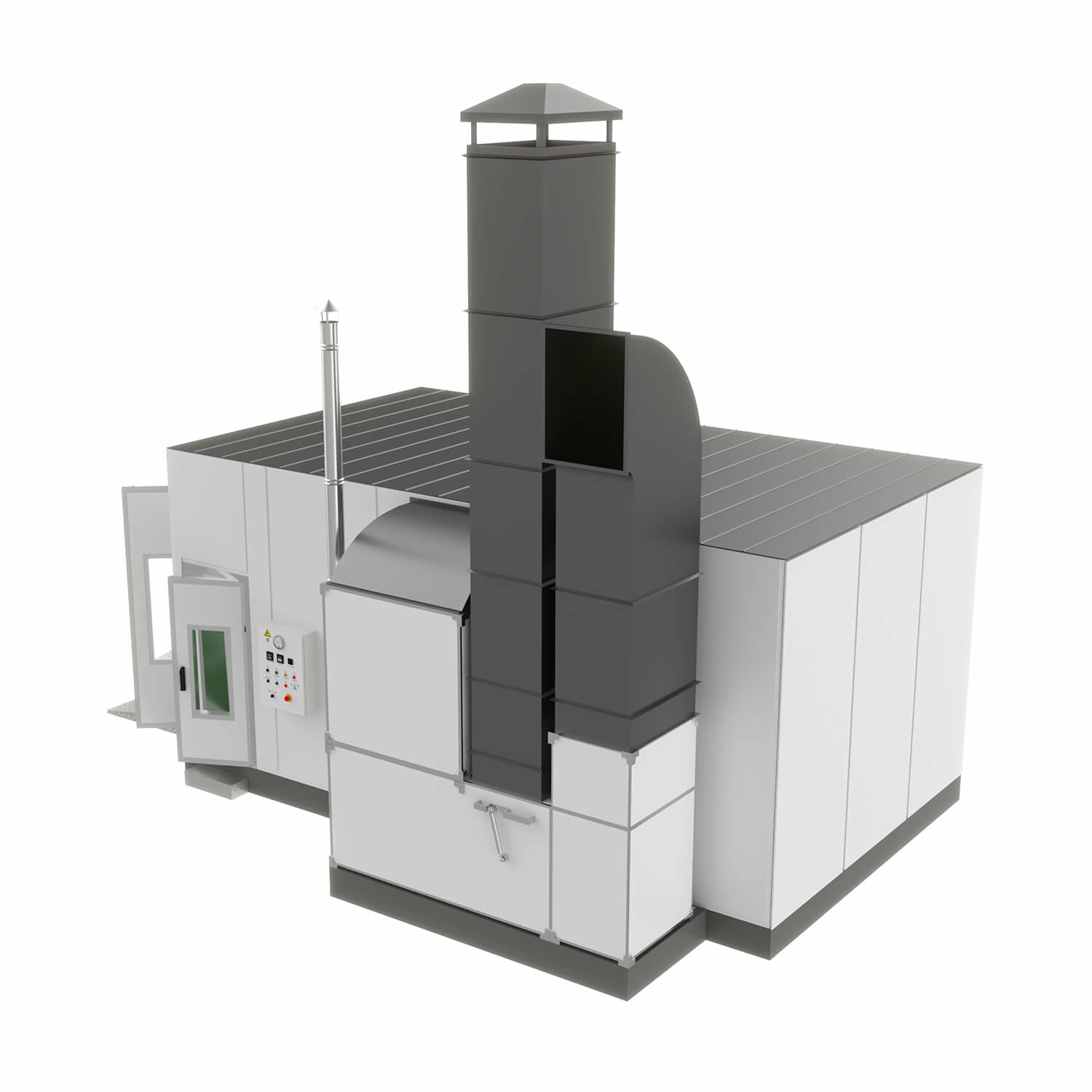 Приточный и вытяжной вентилятор мощностью 7,5 кВт обеспечивают высокий КПД окрасочно-сушильной камеры.