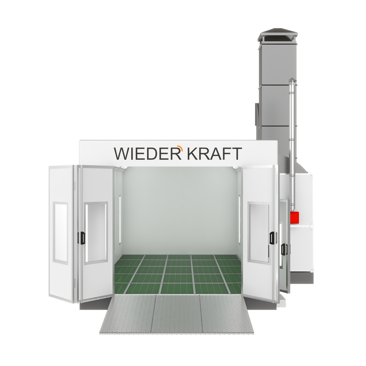Окрасочно-сушильная камера с дизельной горелкой Riello и приточно-вытяжным тепловентиляционным агрегатом WDK-310. Используется для сушки лакокрасочных покрытий и организации технологических процессов окраски. Боковые стены состоят из сэндвич-панелей (негорючий пенополистирол толщиной 53 мм) и являются теплоизоляционными. Визуальный контроль позволяют осуществить 3-х створчатые ворота со встроенными смотровыми окнами. Можно установить дополнительный комплект ворот с целью организации сквозного проезда. Установить приточно-вытяжную группу с любой стороны в процессе монтажа позволяет унифицированная конструкция.