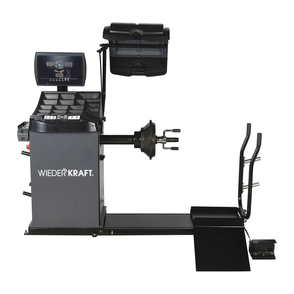 Балансировочный станок WiederKraft WDK-790B для обслуживания грузовых автомобилей с максимальным диаметром колеса до 1200 мм и весом не превышающем 200 кг. Применяется балансировке грузовых и легковых колес, а также измерения их дисбаланса. WDK-790B подключается к сети напряжением 380 вольт. Стенд оснащен высокомощным компьютером, который обеспечивает максимальную точность измерений. Индикаторный дисплей для визуального контроля всех рабочих параметров. Использование точечного лазерного указателя существенно сокращает время установки грузов. Функция автоматического торможения гарантирует немедленную остановку вращения колеса в случае необходимости. Специальные ячейки, которые находятся на рабочем столе позволяют расположить грузики для удобства и экономии рабочего времени. Специальный кожух препятствует вылету мелких частиц и камней, тем самым защищает оператора от повреждений. Широкое основание эффективно распределяет вибрации и обеспечивает точность станка во время работы. Устройство снабжено пневматическим лифтом грузоподъемностью до 0,2 т. Применяется на станциях технического обслуживания и в шиномонтажных мастерских.
