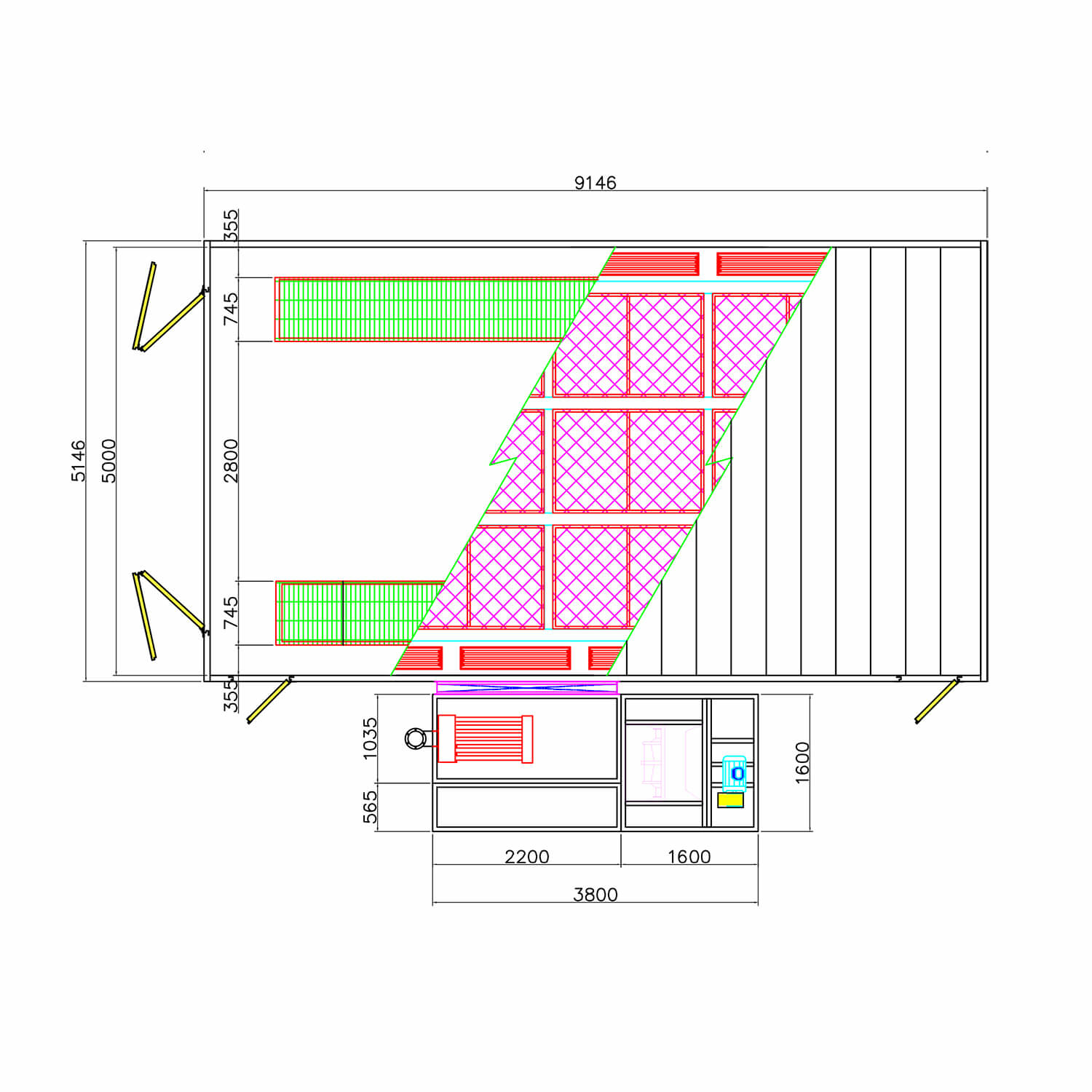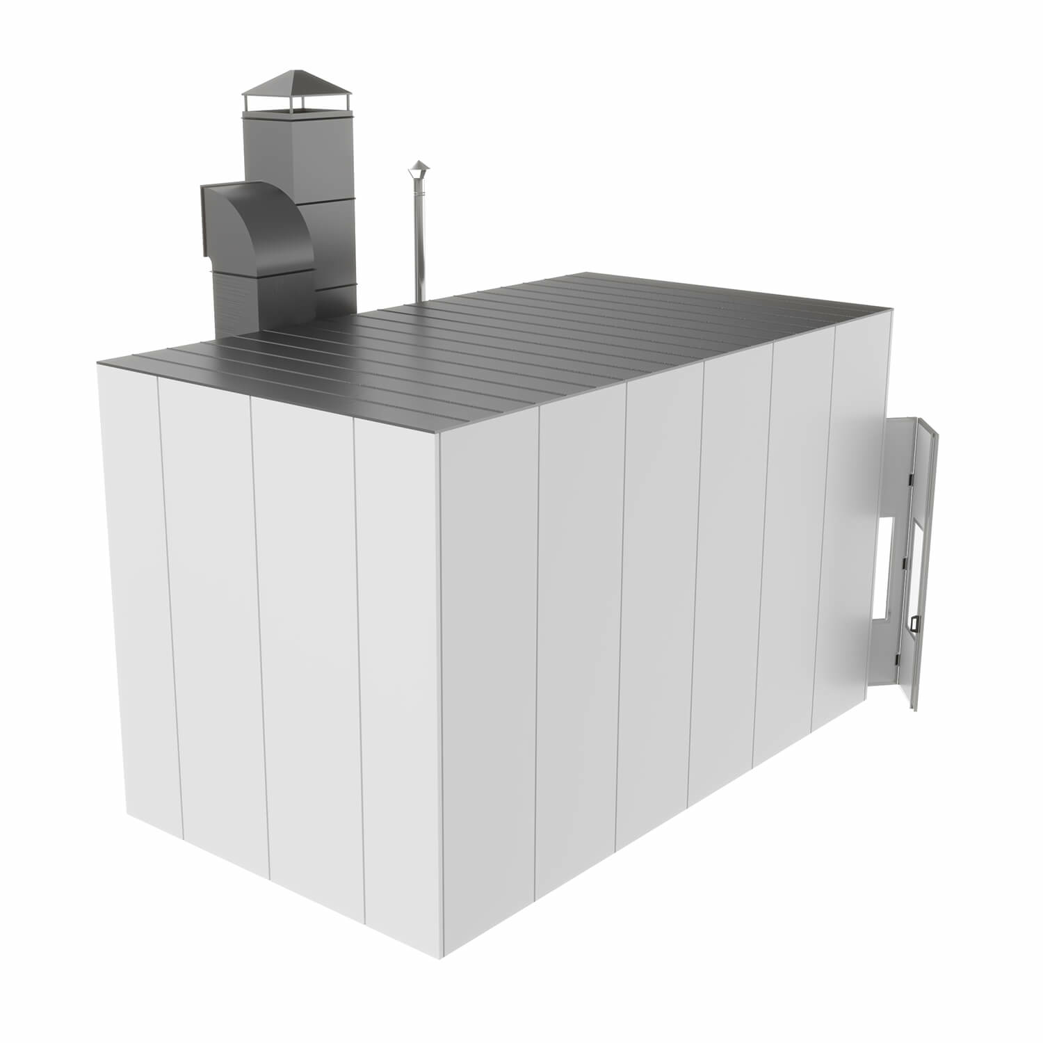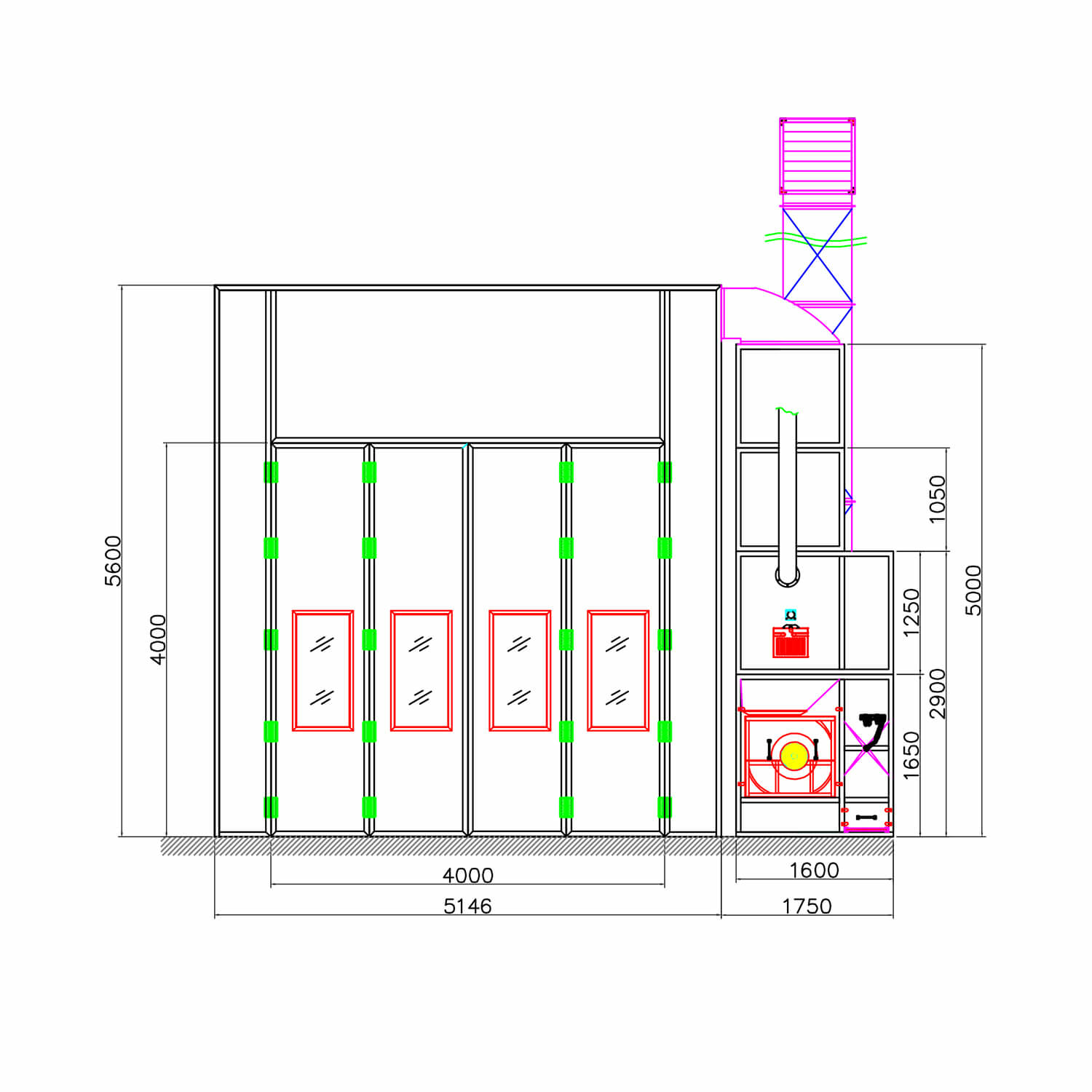 Окрасочно-сушильная камера с дизельными горелками Riello и приточно-вытяжным тепловентиляционным агрегатом. Используется для сушки лакокрасочных покрытий и организации технологических процессов окраски. Боковые стены состоят из сэндвич-панелей (негорючий пенополистирол толщиной 70 мм) и являются теплоизоляционными. Визуальный контроль позволяют осуществить 3-х створчатые ворота со встроенными смотровыми окнами. Можно установить дополнительный комплект ворот с целью организации сквозного проезда. Установить приточно-вытяжную группу с любой стороны в процессе монтажа позволяет унифицированная конструкция.